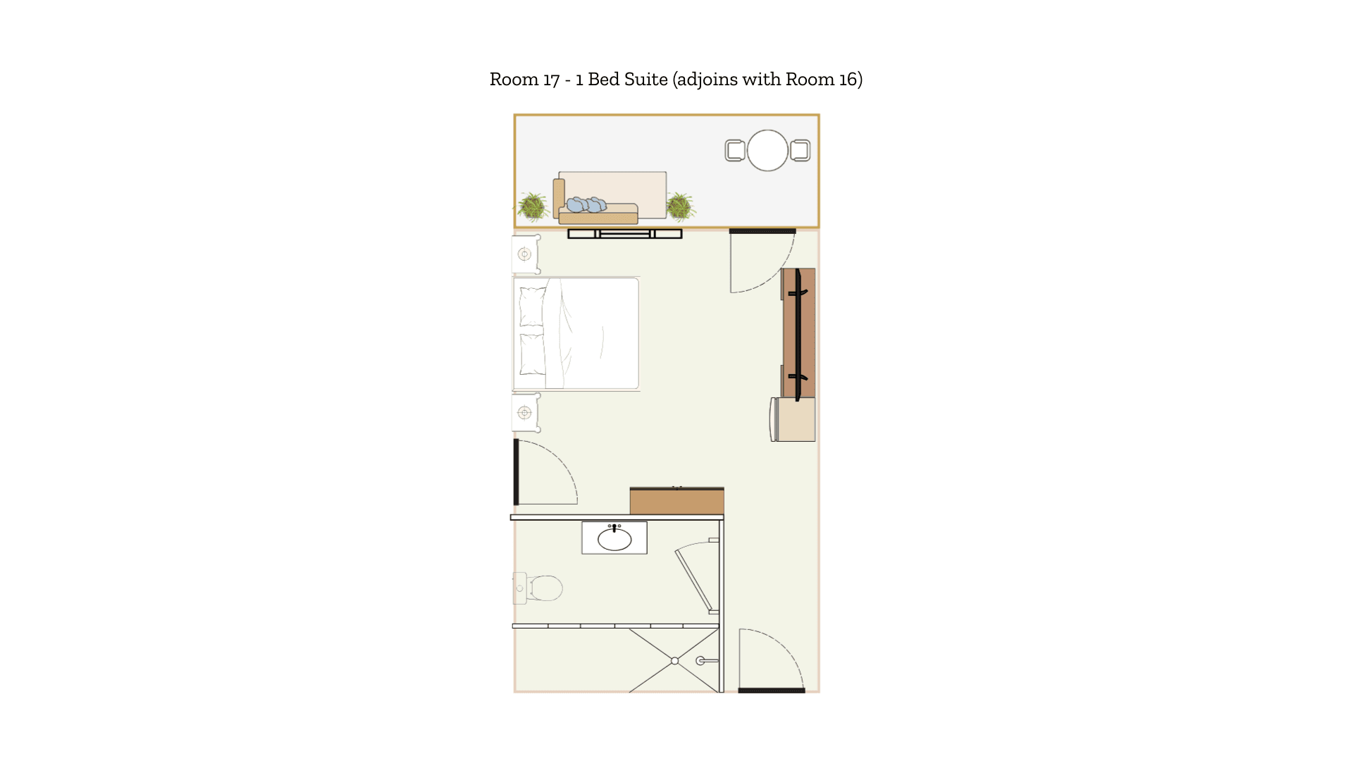 Stunning King Suite perfectly proportioned for one or two guests seeking a sea front escape or for an extended group wishing to have the convenience of an internal door adjoining with Suite 16 next door.